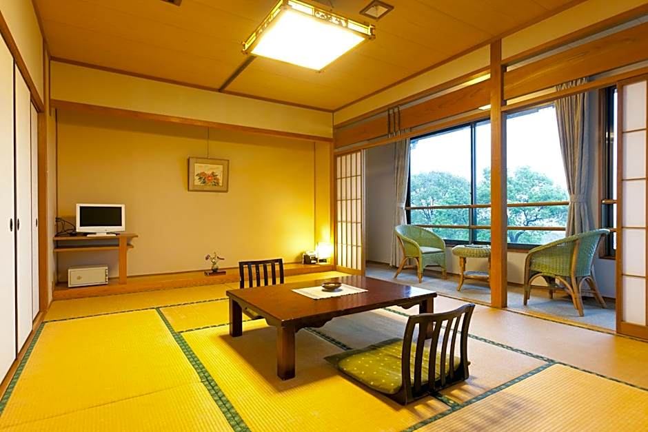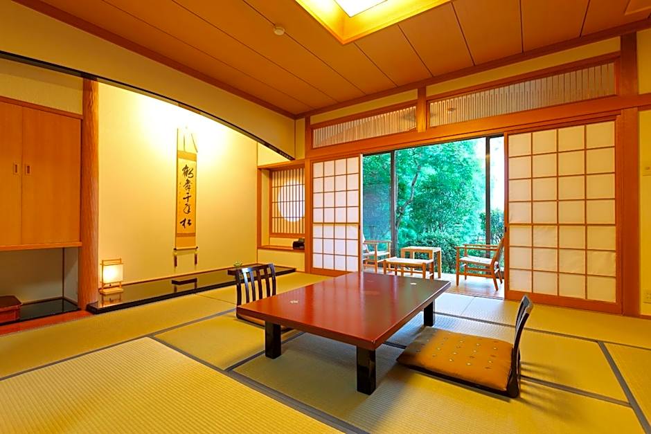 The quadruple room offers air conditioning, tatami, as well as a private bathroom boasting a bath and a shower. The quadruple room features an electric kettle, yukata, heating, a flat-screen TV, as well as garden views. The unit has 4 futons.